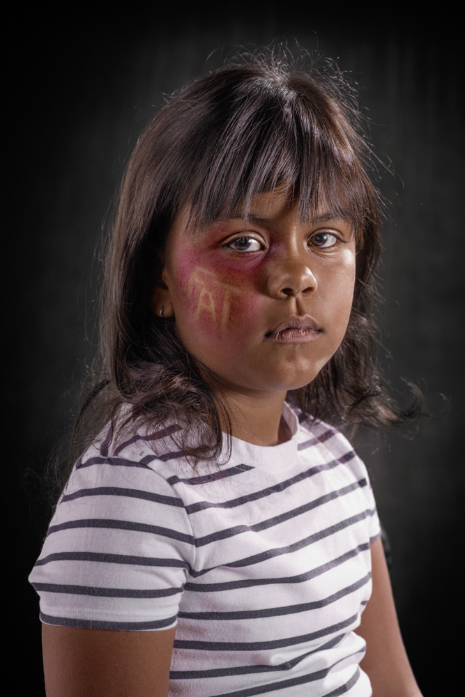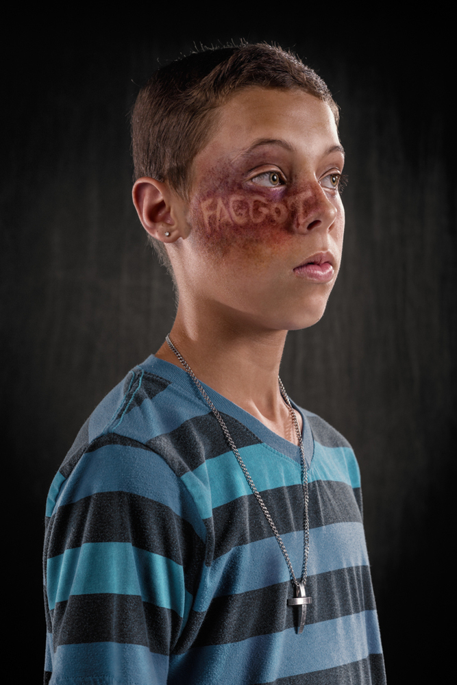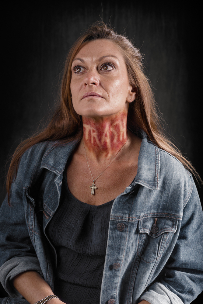 Για της ανάγκες της σειράς, επιστρατεύτηκε ένας makeup artist προκειμένου να γεμίσει με μώλωπες και σημάδια τους πρωταγωνιστές της φωτογράφισης. Οι λέξεις που έγραψε είναι «καθημερινές» και πληγώνουν αρκετά τους αποδέκτες τους: «ηλίθιε», «χαζέ», «πόρνη» και άλλες πολύ χειρότερες.
