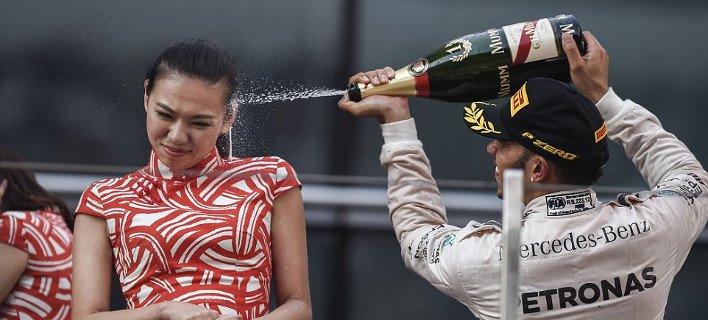 Λιούις Χάμιλτον πανηγύρισε τη 2η νίκη του σε τρία Grand Prix φέτος, στη Σανγκάη όμως ο τρόπος με τον οποίο επέλεξε να πανηγυρίσε κατά τη διάρκεια της απονομής προκάλεσε αρνητικά σχόλια. Έλουσε με σαμπάνια ένα από τα κορίτσια του grid, ρίχνοντάς της απευθείας στο πρόσωπο χωρίς φυσικά τη θέλησή της.