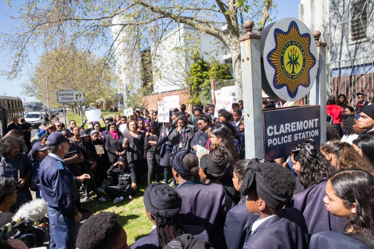 Οι διαδηλωτές ζήτησαν από τον Πρόεδρο της Νοτίου Αφρικής Κυρίλ Ραμαφόσα να λάβει μέτρα εν μέσω μιας αυξανόμενης κρίσης βίας κατά των γυναικών. Απογοητευμένοι οι διαδηλωτές -στην πλειονότητά τους γυναίκες κάθε ηλικίας- έβαλαν μπλόκα στους δρόμους της πόλης. Η αστυνομία χρησιμοποίησε δακρυγόνα για να διασκορπίσει το πλήθος. Οκτώ γυναίκες και τρεις άνδρες συνελήφθησαν.
