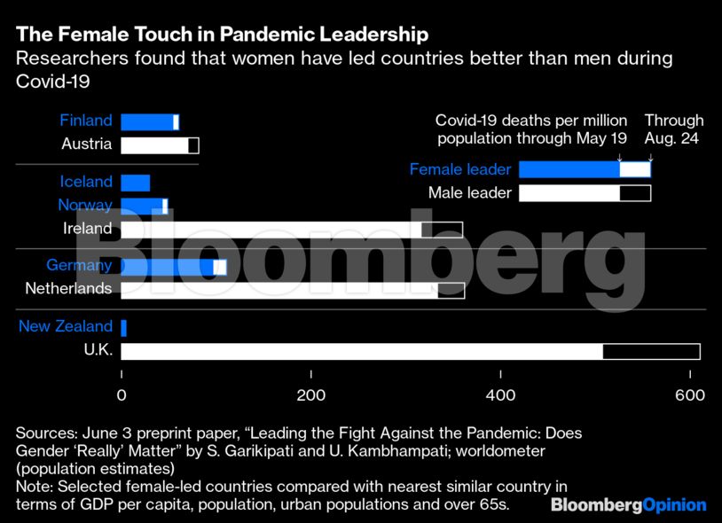 Τα στοιχεία είναι αδιάψευστα! Τουλάχιστον κατά τη διάρκεια του πρώτου κύματος της πανδημίας Covid-19, οι χώρες με γυναίκες στο τιμόνι κατέγραψαν λιγότερους θανάτους από τις χώρες με άνδρες ηγέτες. Αυτό δεν σημαίνει ότι η τάση θα παραμείνει ίδια σε ένα δεύτερο ή τρίτο κύμα. Ούτε σημαίνει ότι οι γυναίκες είναι καλύτερες. Ωστόσο, αξίζει να το σκεφτείτε..
